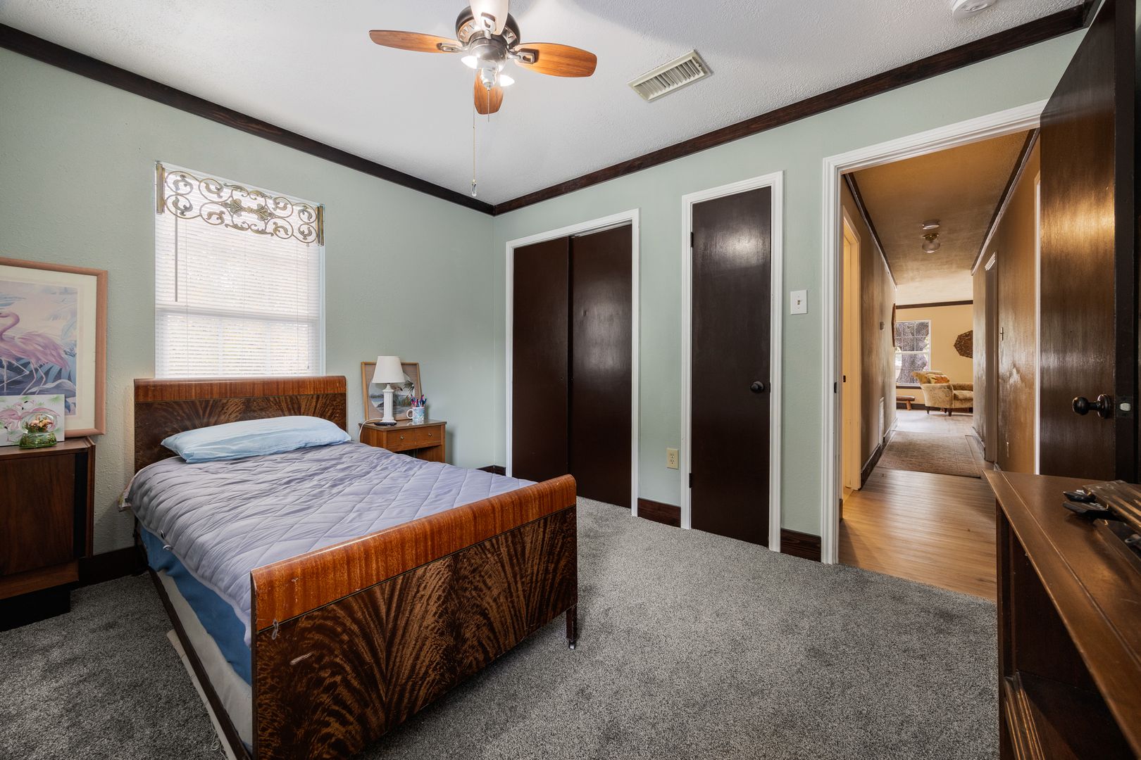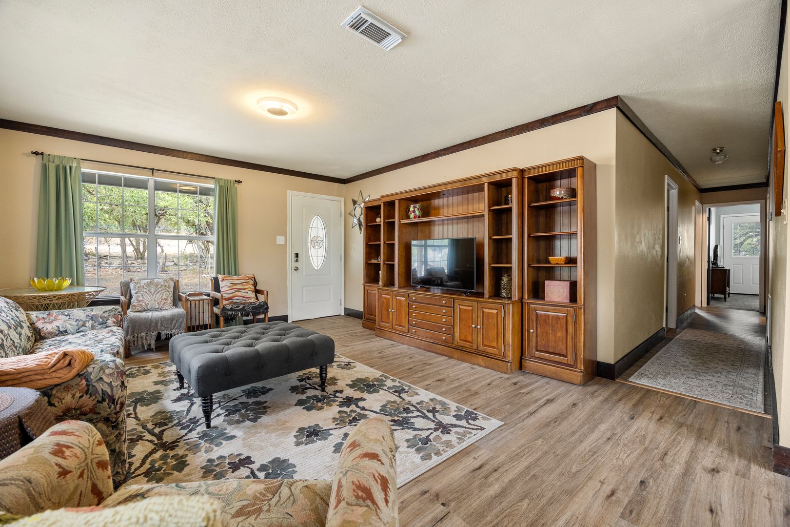 Three bedroom, 2 baths with large sunroom. Home sits on 5 acres, fully fenced with an additional interior fenced area perfect for pets. Exterior storage and ample parking for RV/boat/etc.